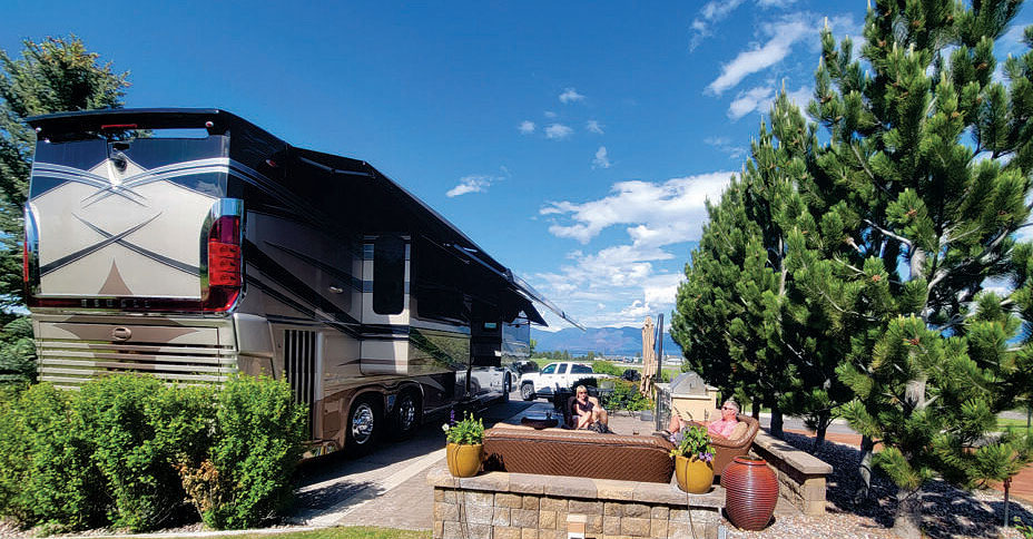 Built-in kitchen with granite countertop, remote controlled fire pit and lights, covered cooktop, large stainless sink with disposal and fridge. Super thick concrete parking pad with stamped borders and patio. Includes nicely appointed furniture and umbrellas for shade.